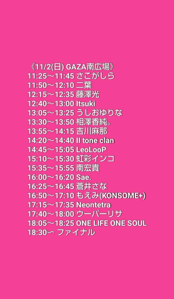 - 備考:Neontetra公式Youtubeにてライブ配信予定/雨天中止の場合はNeontetra公式Xで発表