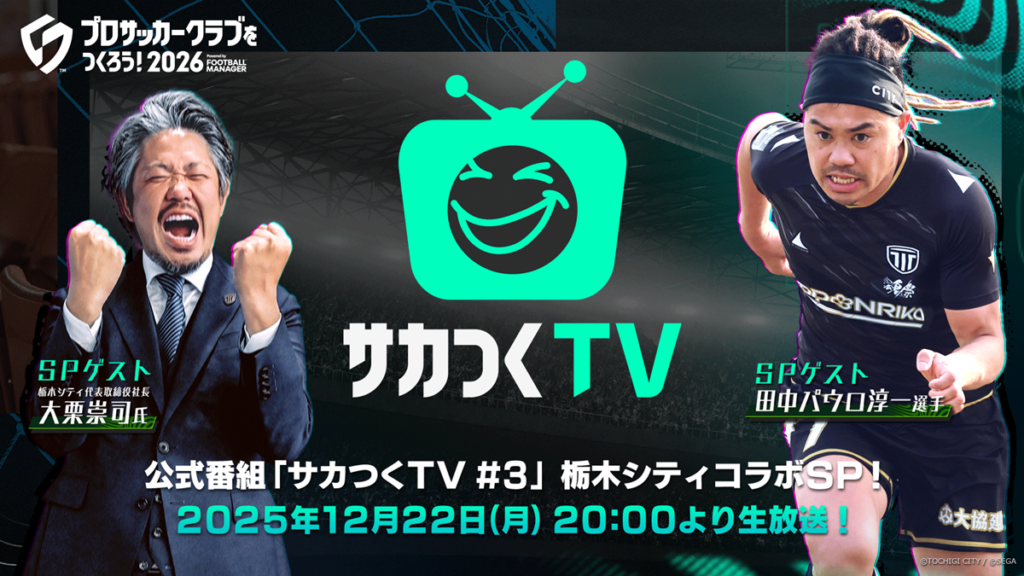 栃木シティコラボスペシャル!田中パウロ淳一選手がゲスト出演!「サカつくTV#3」2025年12月22日(月)20時~放送開始